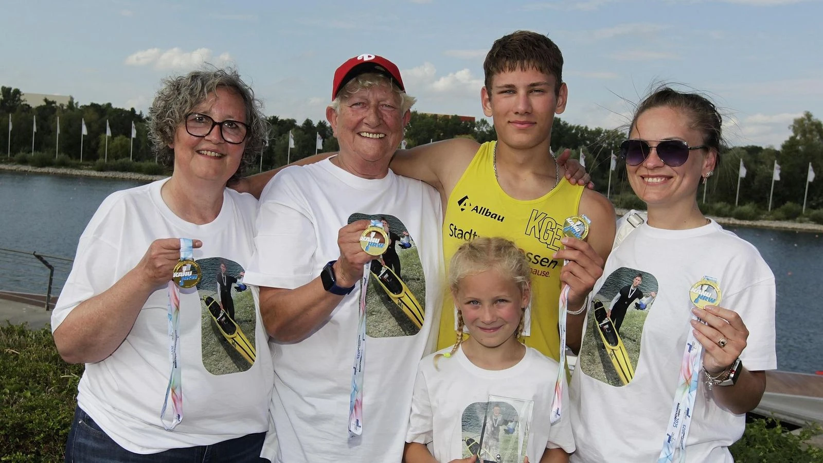 Makar Pron als NRW-Seriensieger im Kreise seiner Familien-Fans (v.li.: Barbara Kirsch, Gaby Panczyk, Makar Pron, Mutter Valentyna Pron, Schwester Sascha Pron) ©Ute Freise/WAZ